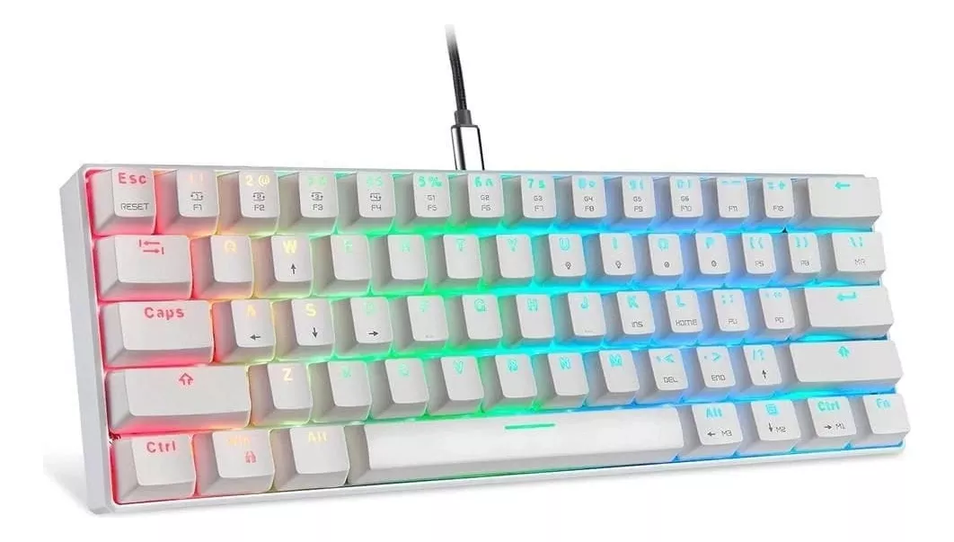 O CK61 possui iluminação RGB personalizável, permitindo que você escolha entre várias cores e efeitos.